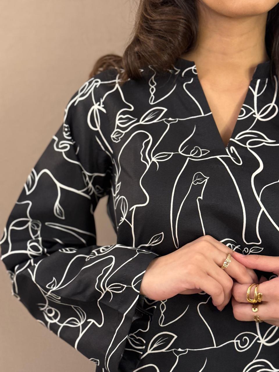Classic meets contemporary in this stunning Black & White Kurti, crafted from premium double georgette fabric. The contrasting tones create a timeless, sophisticated look that’s perfect for both casual and semi-formal wear. Soft, breathable, and effortlessly stylish — this kurti keeps you comfortable while adding a touch of grace to your everyday style. Pair it with white trousers or black pants for a perfectly balanced outfit.